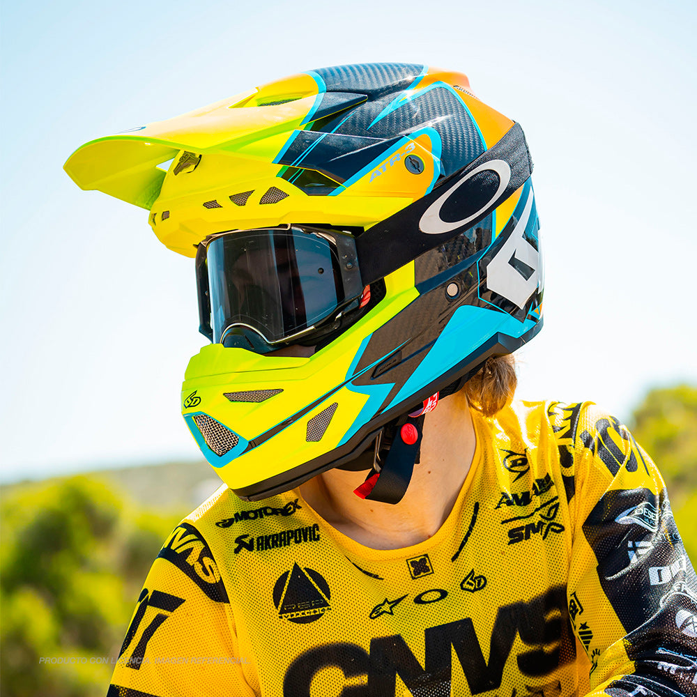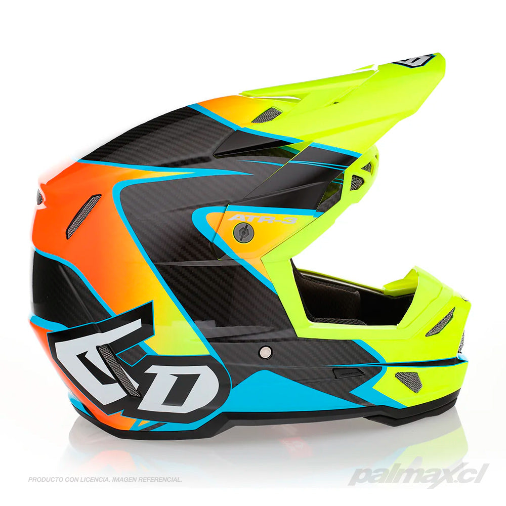 Casco Off-Road de carbono 3K modelo ATR-3 Wave Gloss Cyan Neon Orange | 6D HelmetsPrecio regular $886.900